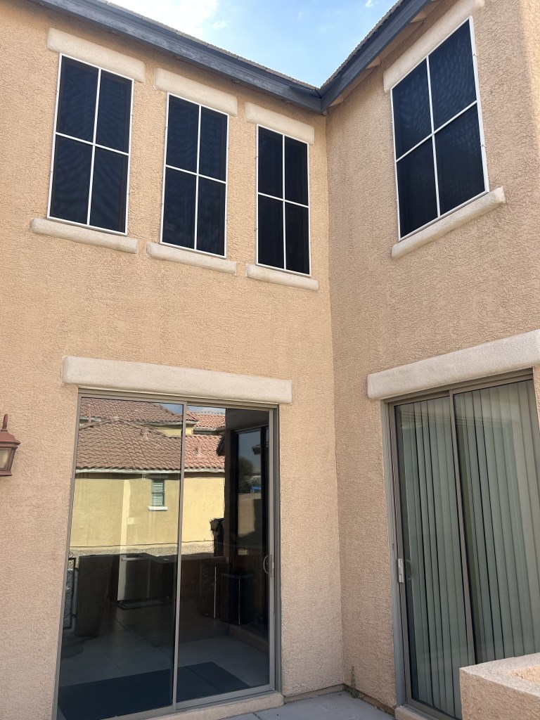 Do you have solar screens already, but they look old and discolored? We are one of the few companies in Las Vegas that are willing to re-mesh your old solar screens, saving you about 50% of the cost of new screens.